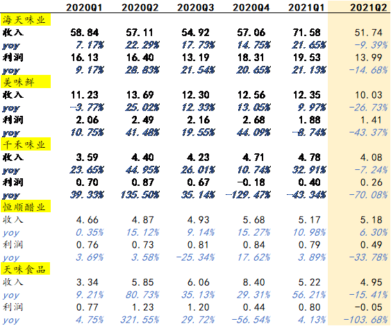 在国内,调味品作为稳定增长的典范,也持续享受较高的估值溢价,进一步拉高消费品整体估值。但是今年中报季,调味品企业的二季度业绩纷纷低于预期,股价也一泻千里。