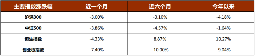 4月A股呈现先抑后扬走势:月初受美国 “ 对等关税 ” 政策扰动,主要指数承压下跌,随后国内市场展现强劲韧性逐步修复,恒生指数和恒生科技本月调整较多。银行、电力、煤炭等代表的红利板块表现稳健,科技股中人形机器人等回调后反弹,但半导体软件类跌幅较大,出口链继续承压,内需类新消费资产则逆势走强,创新药资产延续前两个月强势,但是涨幅趋缓。