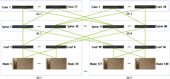 资料来源:英伟达DGX A100 SuperPOD的网络结构