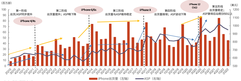 iPhone手机2007年发布第一代,改变了传统手机按键交互方式,触点式的交互为用户打开了新世界。但直到2010年的iPhone 4,苹果手机才迎来划时代的里程碑。诸如愤怒的小鸟、水果忍者等爆款应用开始雨后春笋般的爆发,属于iPhone的大时代开启。