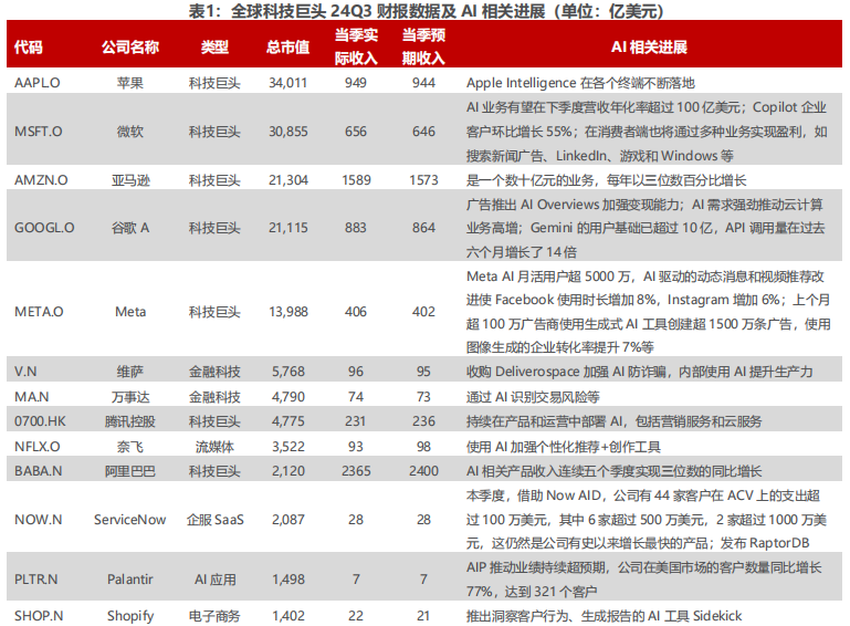目前来看,AI应用商业化进展更快的是美国企业,因为他们的基础设施资源更丰富,大模型迭代更快,企业对AI的接受度更高,付费意愿和付费能力好,所以他们商业化落地也更快。从海外科技巨头24Q3的财报来看,AI的商业化在不断推进,从硬件到软件的飞轮正在被打通。