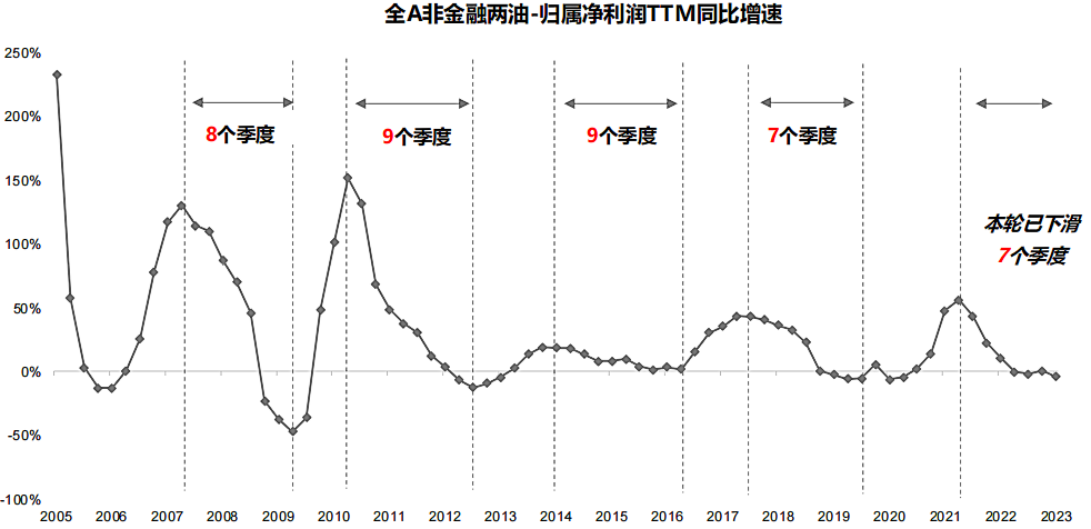 我们不仅看到近月的社融、CPI和PPI等宏观数据低于预期,也观察到地产的新房销售、制造业订单的微观数据环比有所走弱,但经济疲软的预期大部分已反应在了当前股价之中。我们判断A股企业盈利增速的下滑周期已处于后半段,不过投资者在没有强力政策刺激的背景下,仍需通过月度或季度数据来检验上市公司财务数据的底在哪里。