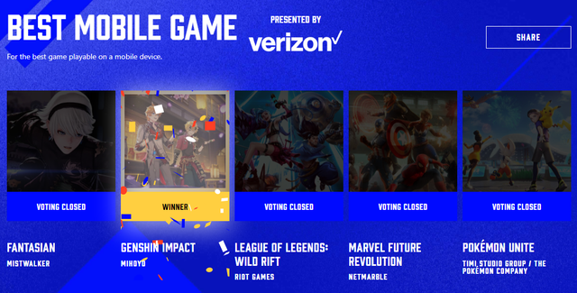 2021年12月,在全球游戏行业三巨头索尼、任天堂和微软联合赞助举办的全球游戏大赏(TGA)上,由国产游戏厂商米哈游开发的《原神》荣膺 “ 2021年度最佳移动游戏奖 ” 。TGA号称游戏界的奥斯卡,《原神》荣膺这一奖项,也是该奖项自2014年设立以来中国IP的首次获奖,几乎算得上是创造了国产手游的历史。