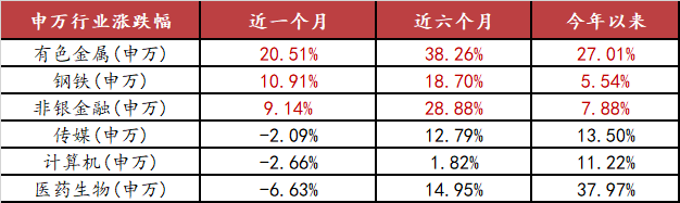 十一月市场横盘震荡,有色、采掘、钢铁涨幅居前,医药、传媒和计算机跌幅居前。延续十月风格,受益于经济复苏的顺周期板块表现亮眼,而依靠估值提升的消费和成长股相对暗淡。我们预计这种情况还会持续一段时间,主要因为自二季度以来,中国经济首先从疫情的低点持续反弹、复苏,(这已反映到过去三个季度上市公司的财报上,参见上月月报 《丹羿10月报 | 结构重于大盘》 ),在年底/明年初疫苗问世、疫情逐步控制后,海外经济也会出现明显的复苏,这又进一步拉动中国的出口,加速中国经济的增长势头。相对应,疫情伊始出台的各种货币宽松政策,也会逐步退出。实际上从二季度中,中国宽松的货币政策就开始逐渐收缩——中国十年期国债收益率已经从最低点2.5%提升到目前的3.3%。