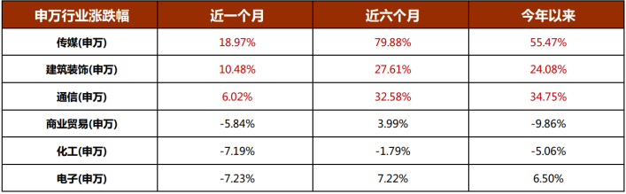 四月市场总体仍然延续3月风格,拔估值为主的传媒、中特估(建筑、石油石化、非银)等走势较强,与经济关联度较高的社服(免税为主)、汽车和食品饮料等跌幅较多。
