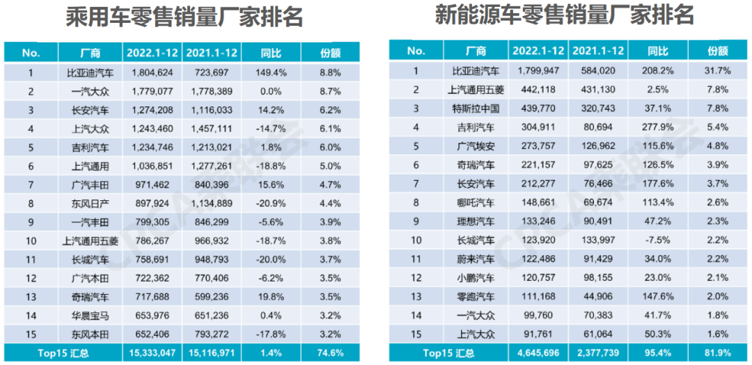 虽然全年的疫情防控与后续放开对汽车市场的供应和消费两端都产生了极大的干扰,但纵观全年的市场,用一句话来概括就是 “ 不断崛起的自主车,一路狂奔的比亚迪 ” 。