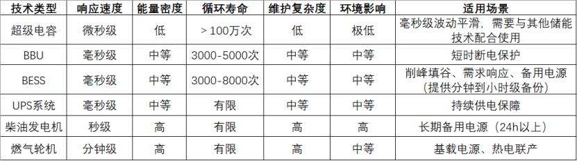 综上,一个适配数据中心的供电系统需要平衡响应频率、能量密度、启动效率、环境友好、平抑负载波动、可靠性、经济性等诸多方面的条件,传统的供电方式很难满足所有的需要,混合供电方案反而对电网稳定性更有帮助。未来供电系统的创新性设计会越来越多,标准并不单一。