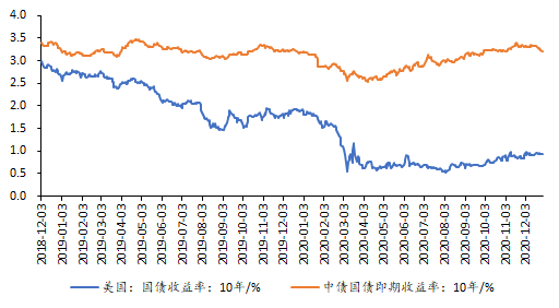 图1:中美十年期国债利率(2019-2020)