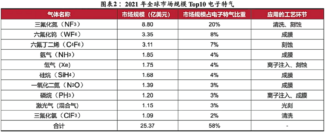 根据国际半导体产业协会统计,电子特气作为仅次于硅片的第二大半导体晶圆制造材料,占晶圆制造成本的13%。