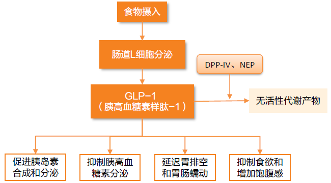 图6:GLP-1在体内的产生、代谢及作用示意图