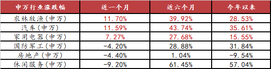 十月市场横盘震荡,汽车、家电、农林、新能源表现较强,军工、旅游、地产和零售跌幅居前。十月是三季报密集披露期,表现较强的板块/个股,基本都是季报业绩超预期的。典型如汽车、家电,过去一年行业基本处于底部区域,投资者预期普遍不高。在低基数的情况下,随着国内经济的持续复苏,很容易出现业绩超过投资者一致预期,从而股价表现较好。