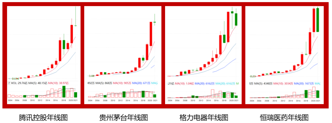 从上图看到,这些股票的长期收益率都在几十倍甚至百倍。同时一个易被忽视的点是,绝对收益者买入这类股票长期持有体验很好。