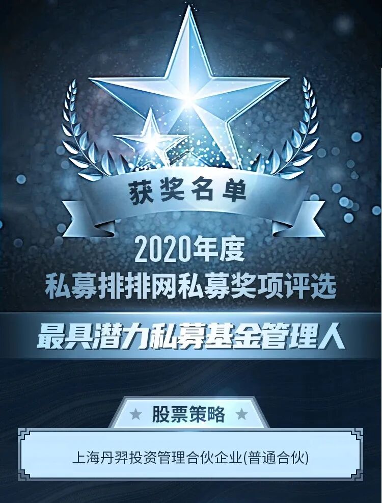 丹羿荣誉 | 我司近期荣获2020年度国金最佳私募奖、金长江两项大奖、私募排排网最具潜力奖等多项大奖