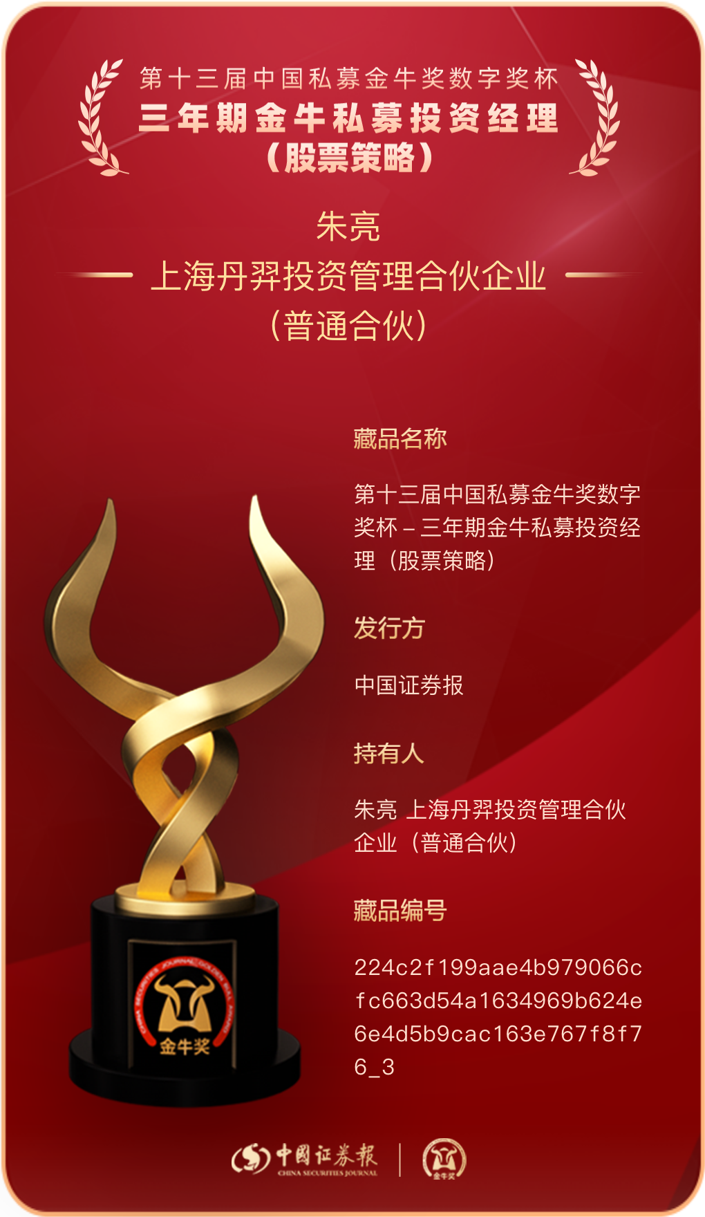 丹羿荣誉 | 荣获金牛奖 “ 三年期金牛私募投资经理(股票策略)” 奖