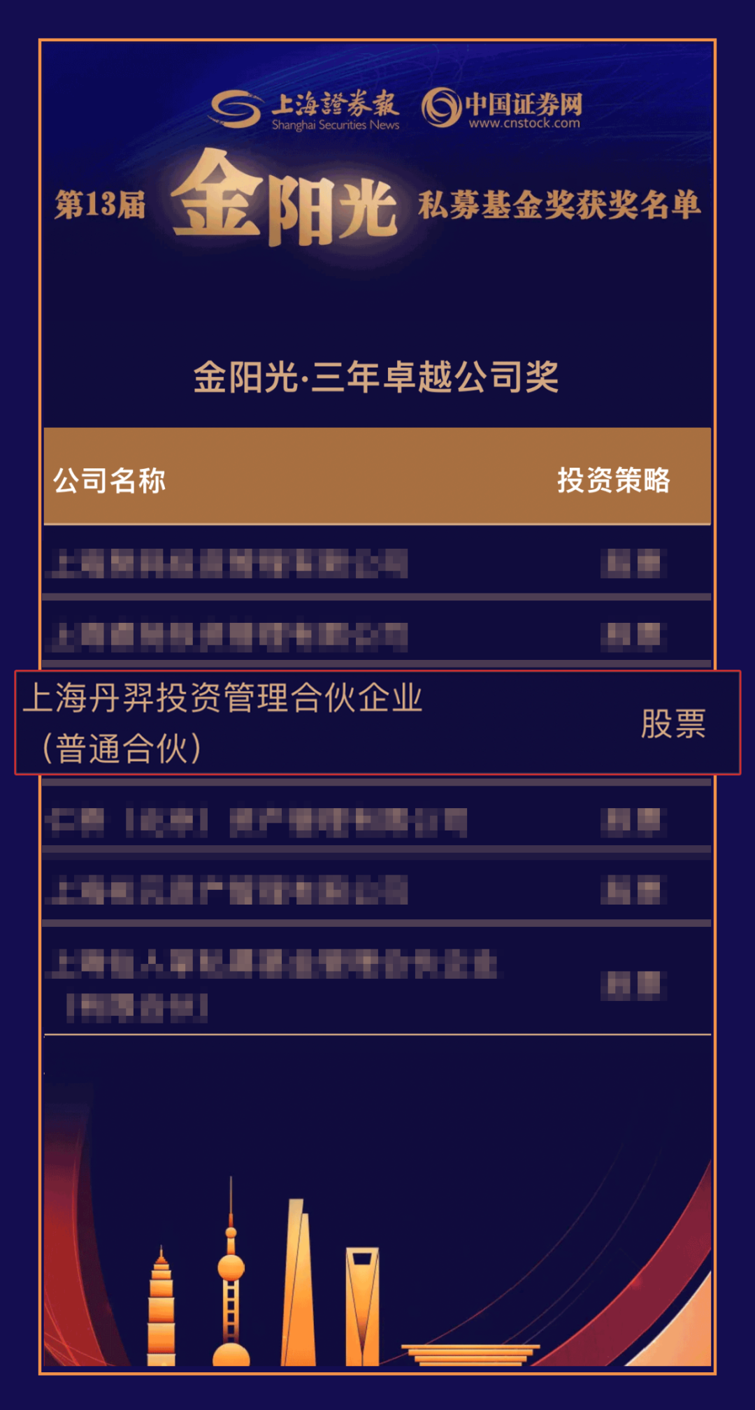 丹羿荣誉 | 荣获第十三届国金 “ 年度最佳私募(主动股票策略)” 奖