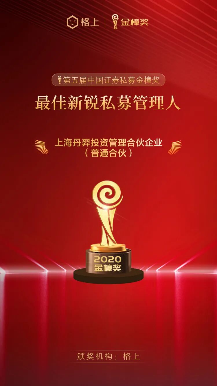 丹羿投资凭借优秀的市场表现、扎实的投资能力,荣获第五届中国证券私募金樟奖“2020年最佳新锐私募管理人”。